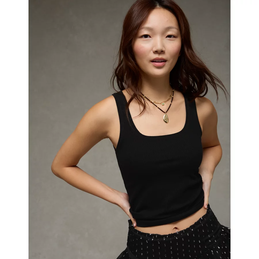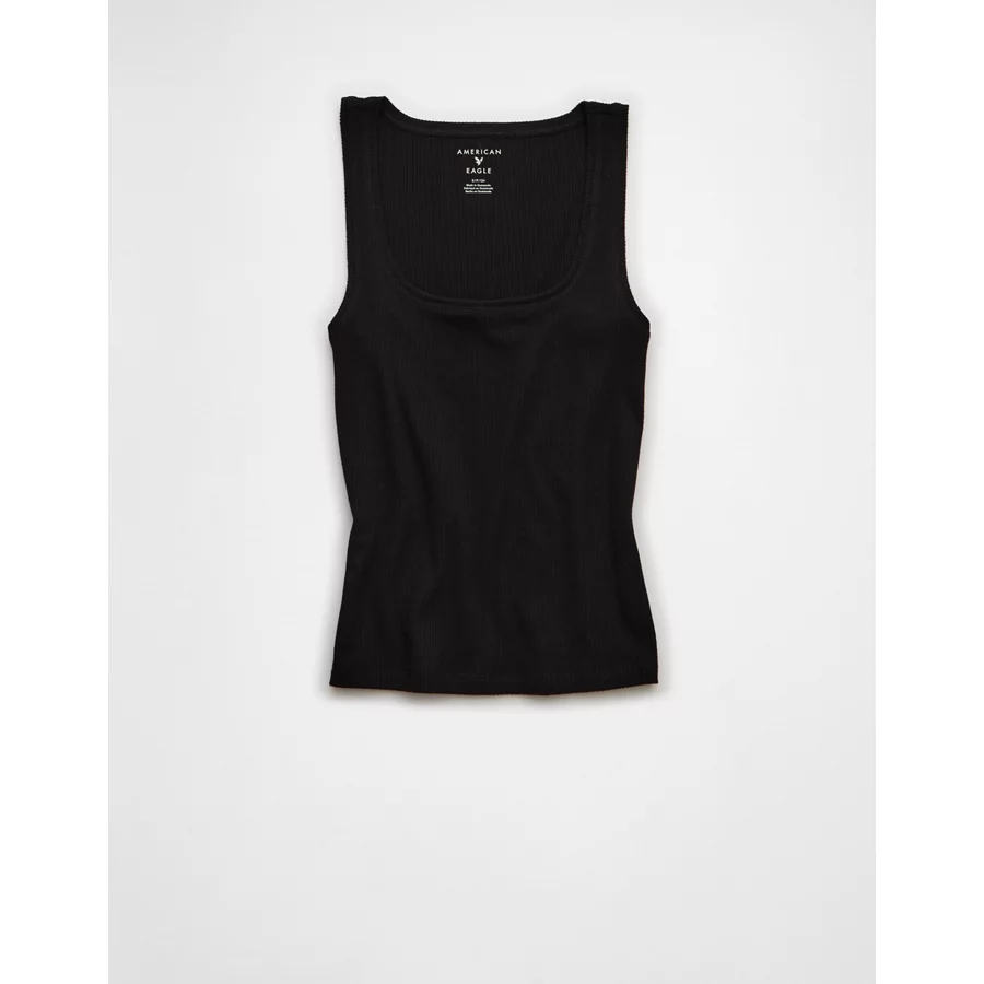 AE Square Neck Plush Tank Top – True Black