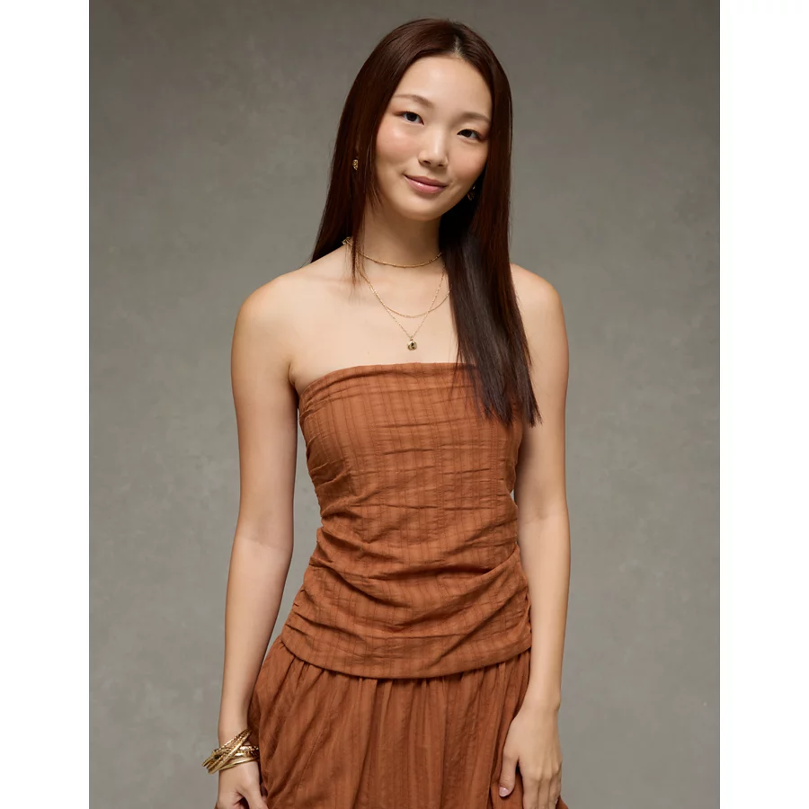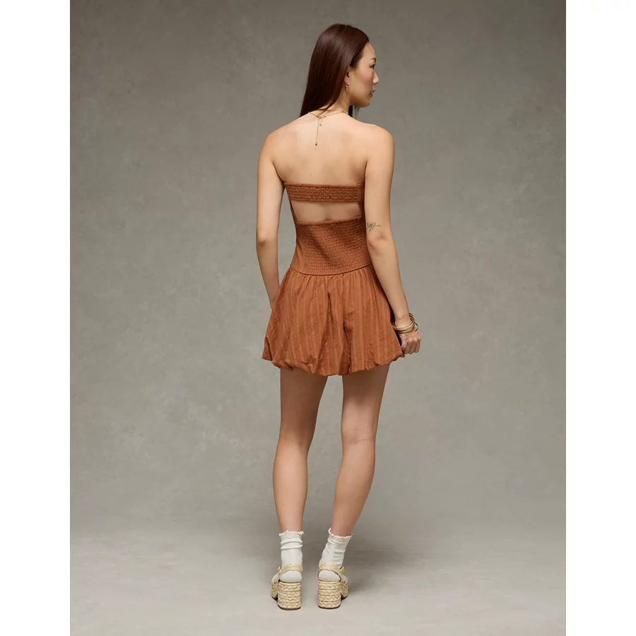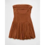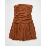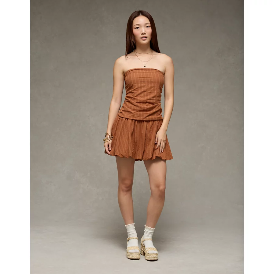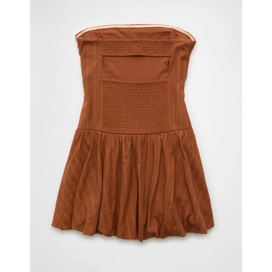 AE Strapless Drop Waist Mini Bubble Dress – Brown