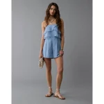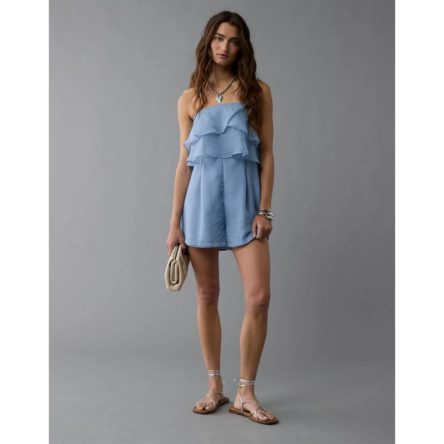 AE Strapless Organza Ruffle Romper – Blue