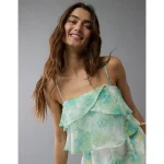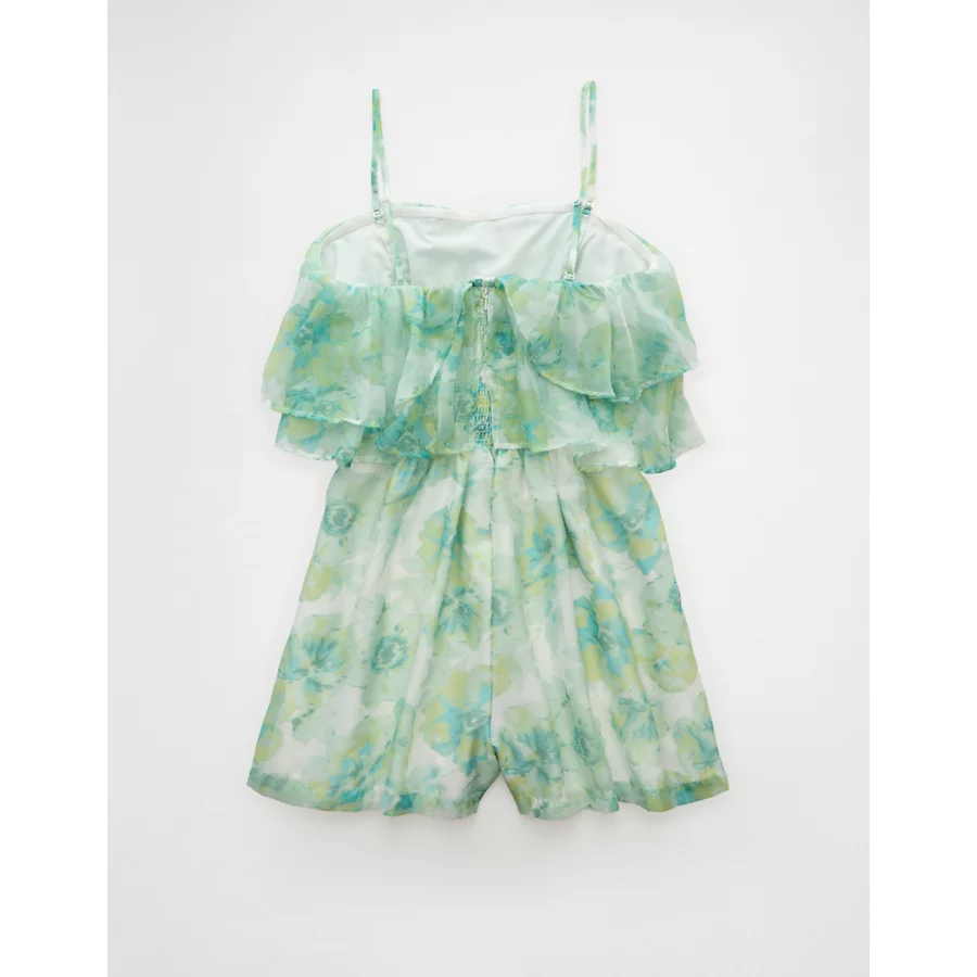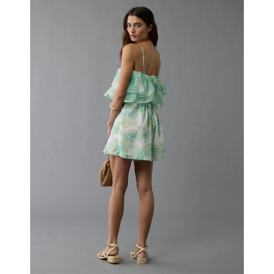 AE Strapless Organza Ruffle Romper – Green