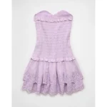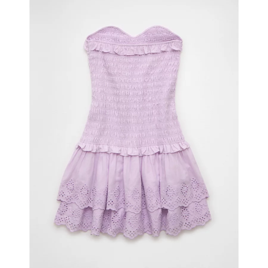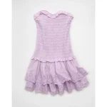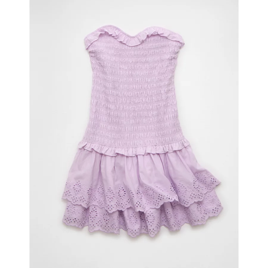 AE Strapless Smocked Ruffle Drop Waist Mini Dress – Lilac Ice