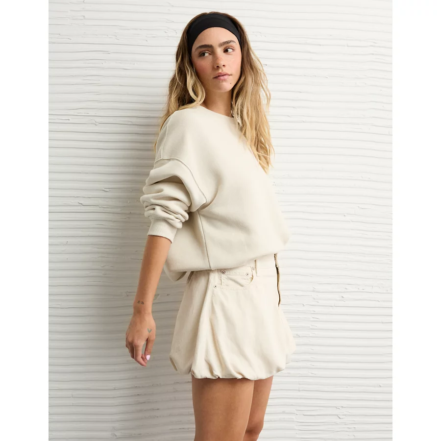 AE 8″ Dreamy Drape Stretch Low-Rise Baggy Jort – White