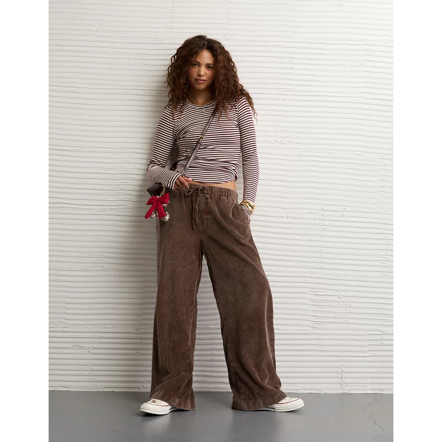 AE Stretch Corduroy Low-Rise Baggy Wide-Leg Pant – Coffee