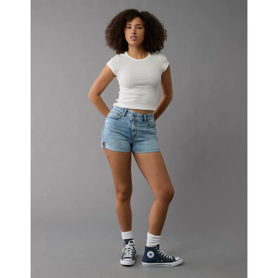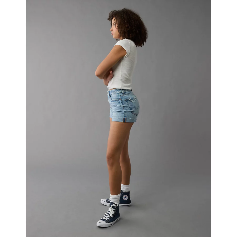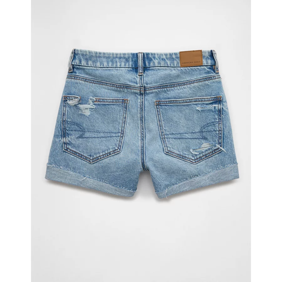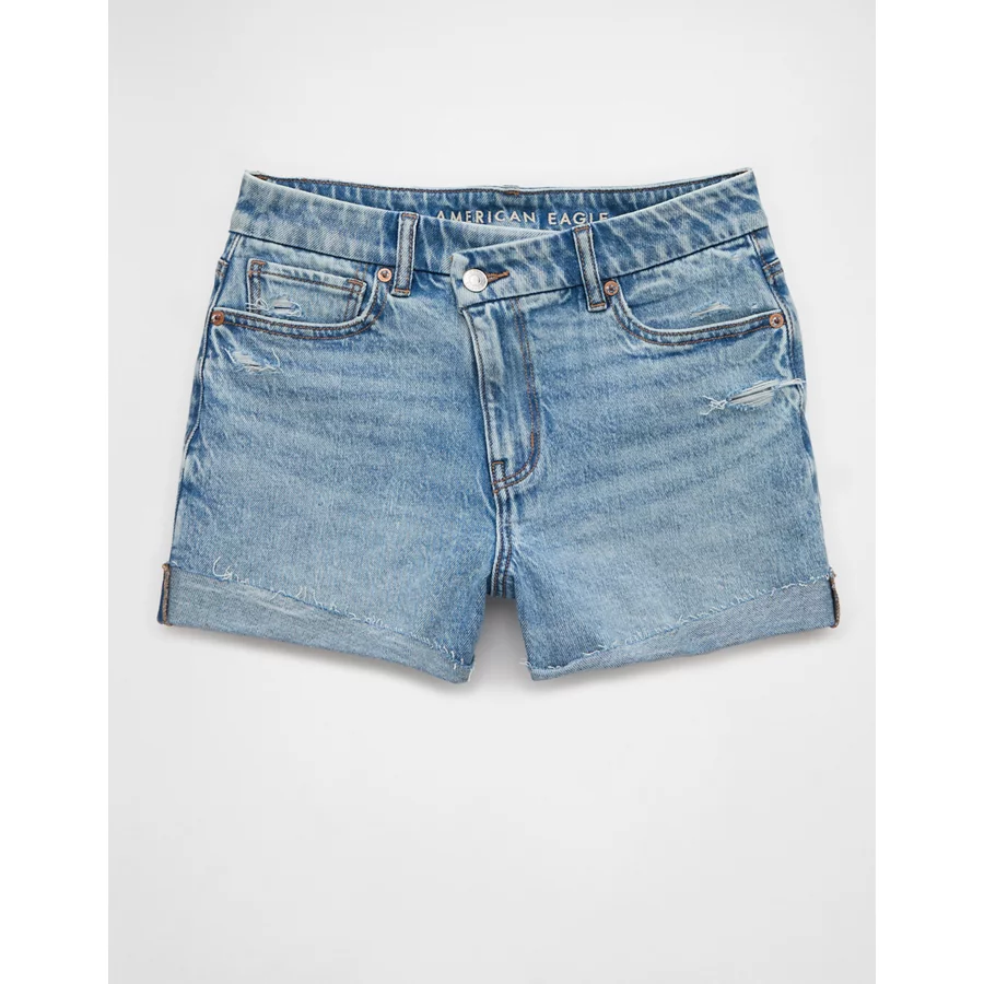 AE Stretch Curvy Ripped Denim Mom Short – Medium Bright Indigo