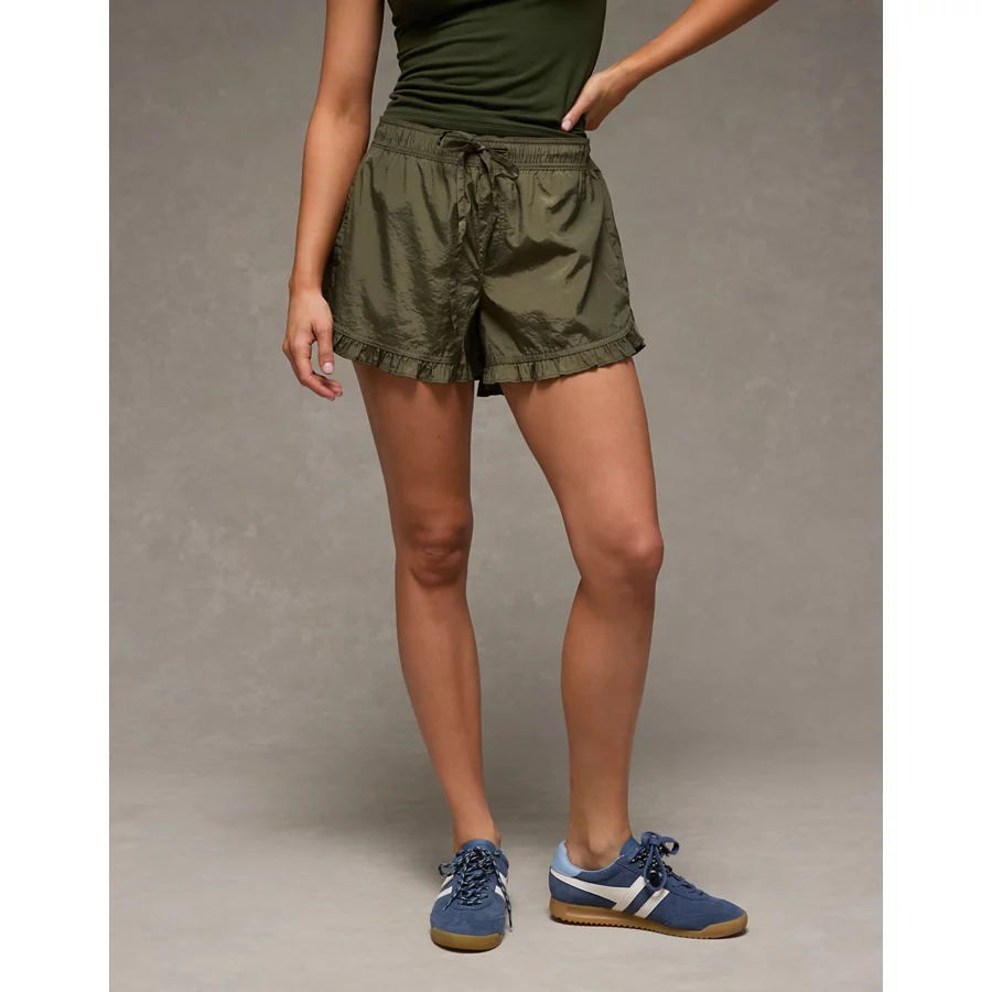 AE Stretch High-Waisted Ruffle Hem Short – Faded Olive