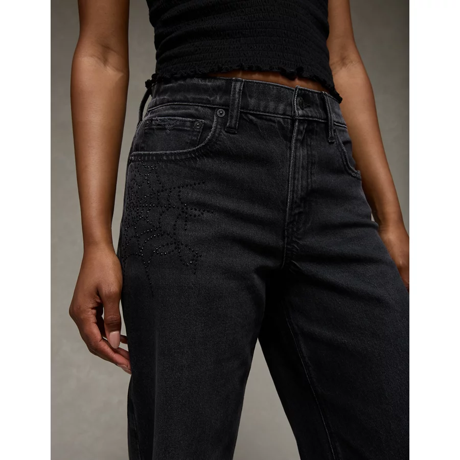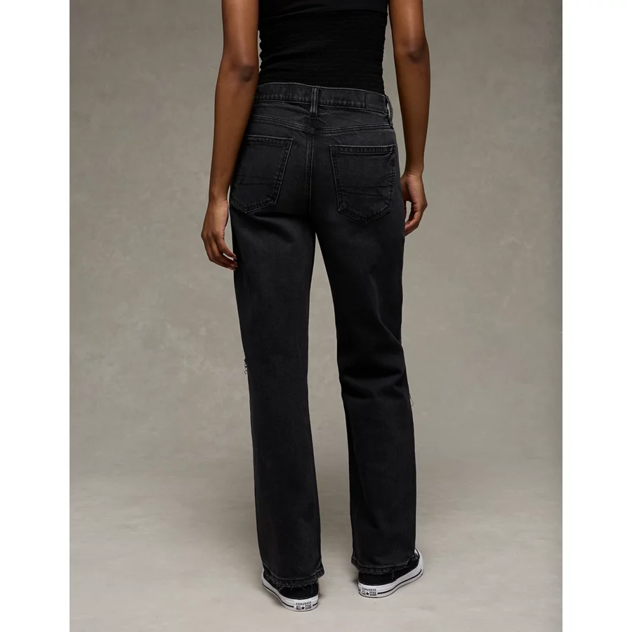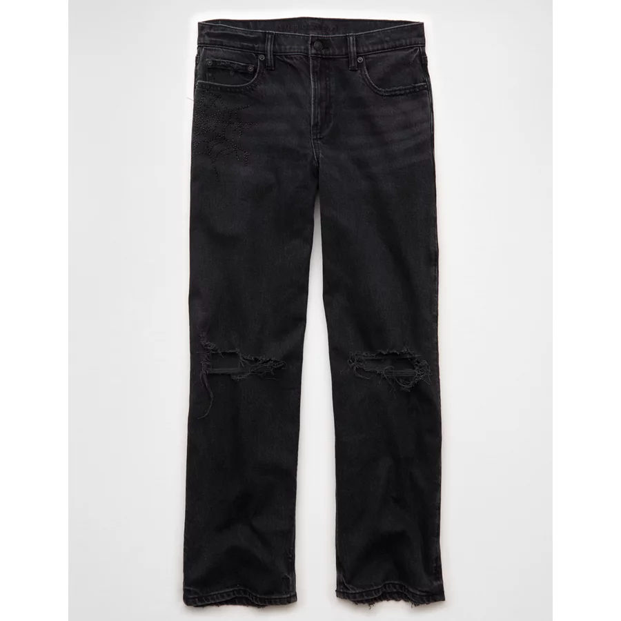 AE Stretch High-Waisted Spiderweb Stovepipe Jean – Raven Black