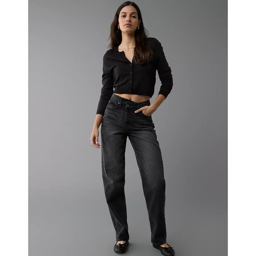 AE Strigid Super High-Waisted Crossover Baggy Straight Jean – Black Magic