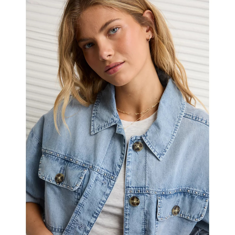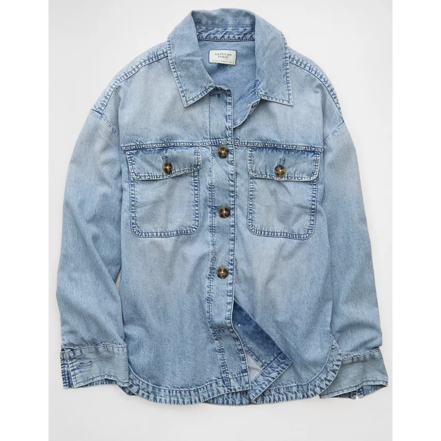 AE Studded Denim Shacket – Medium Wash