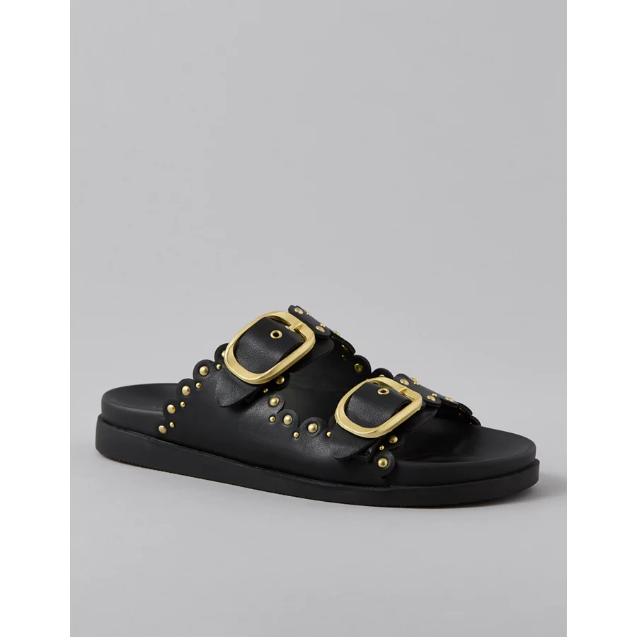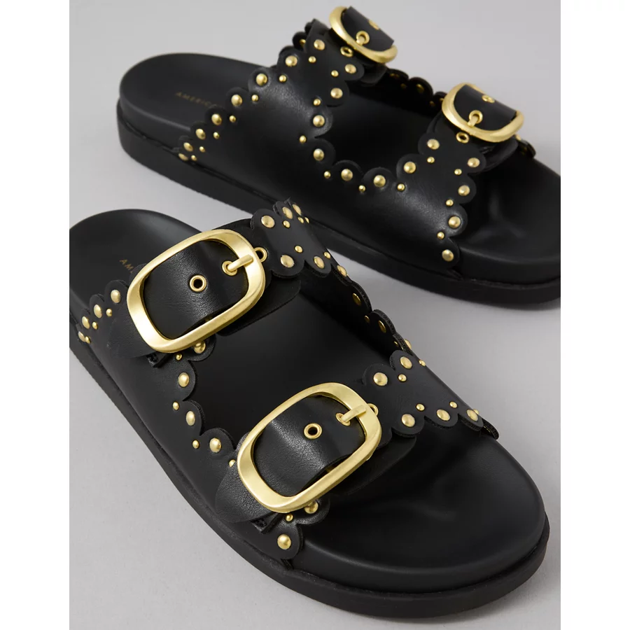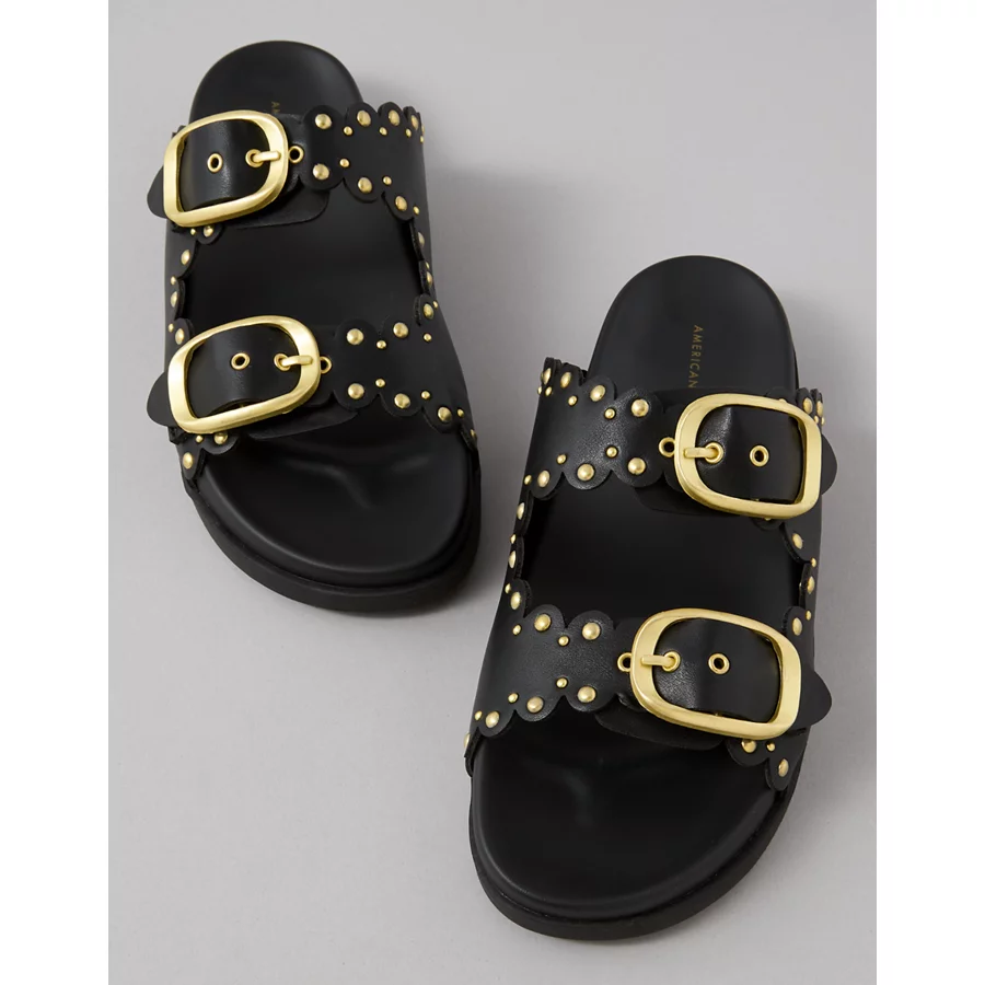 AE Studded Double Buckle Sandal – Black