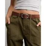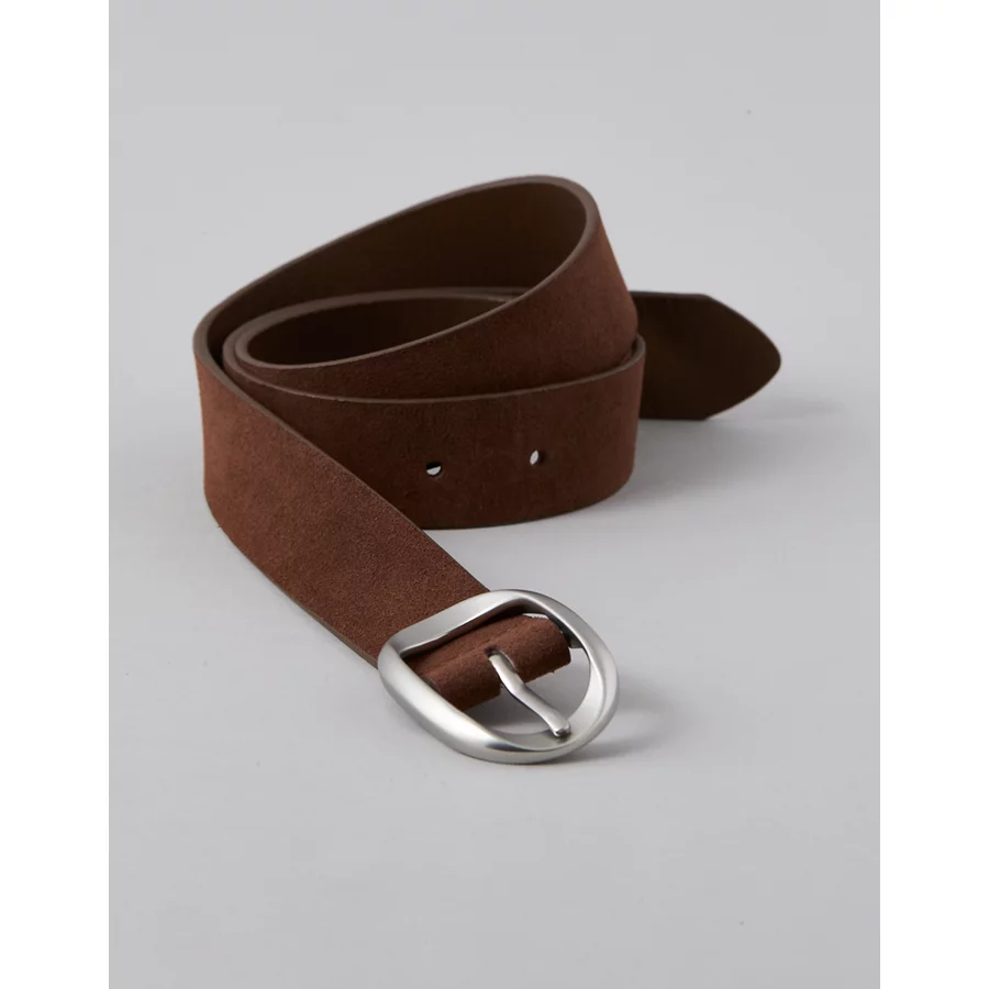 AE Suede Oval Twist-Buckle Belt – Chocolate