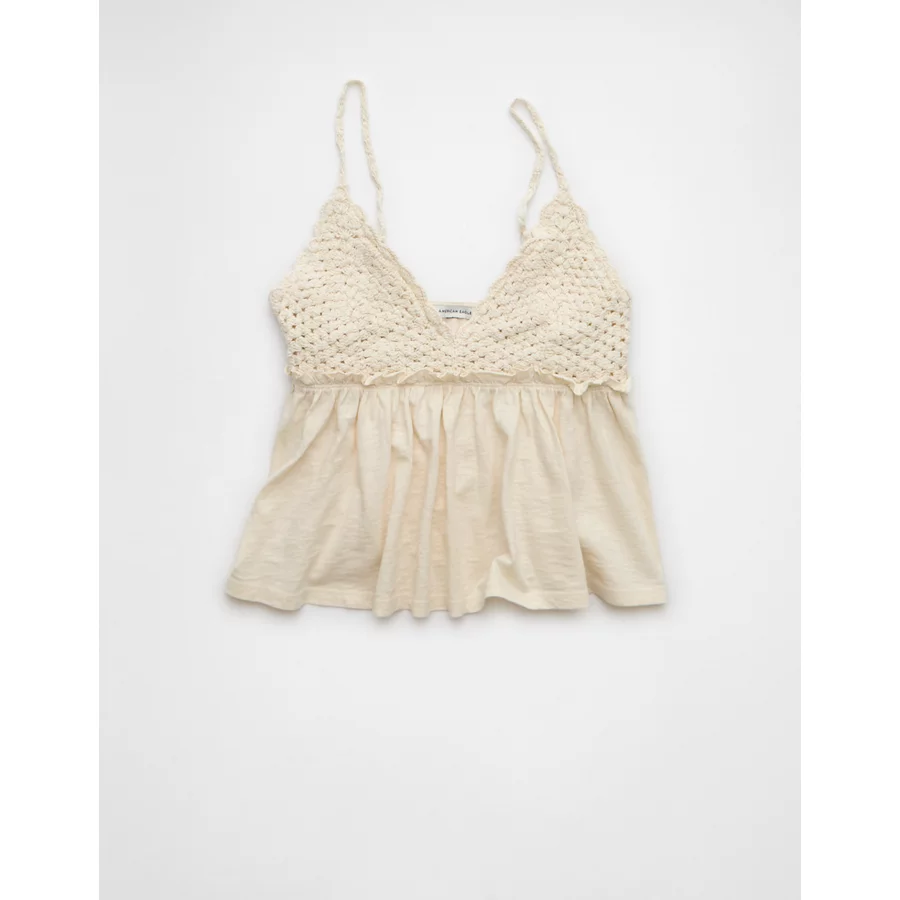 AE Sunchaser Knit Crochet Babydoll Cami – Cream