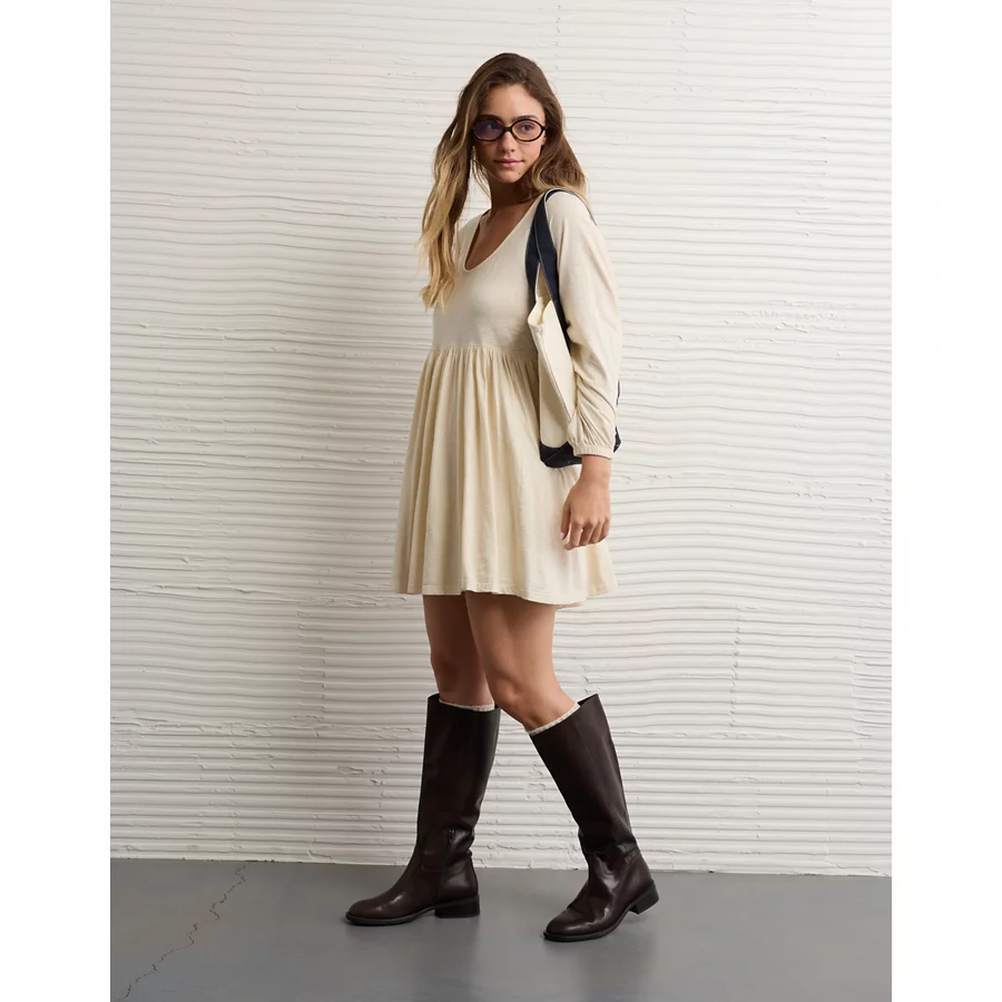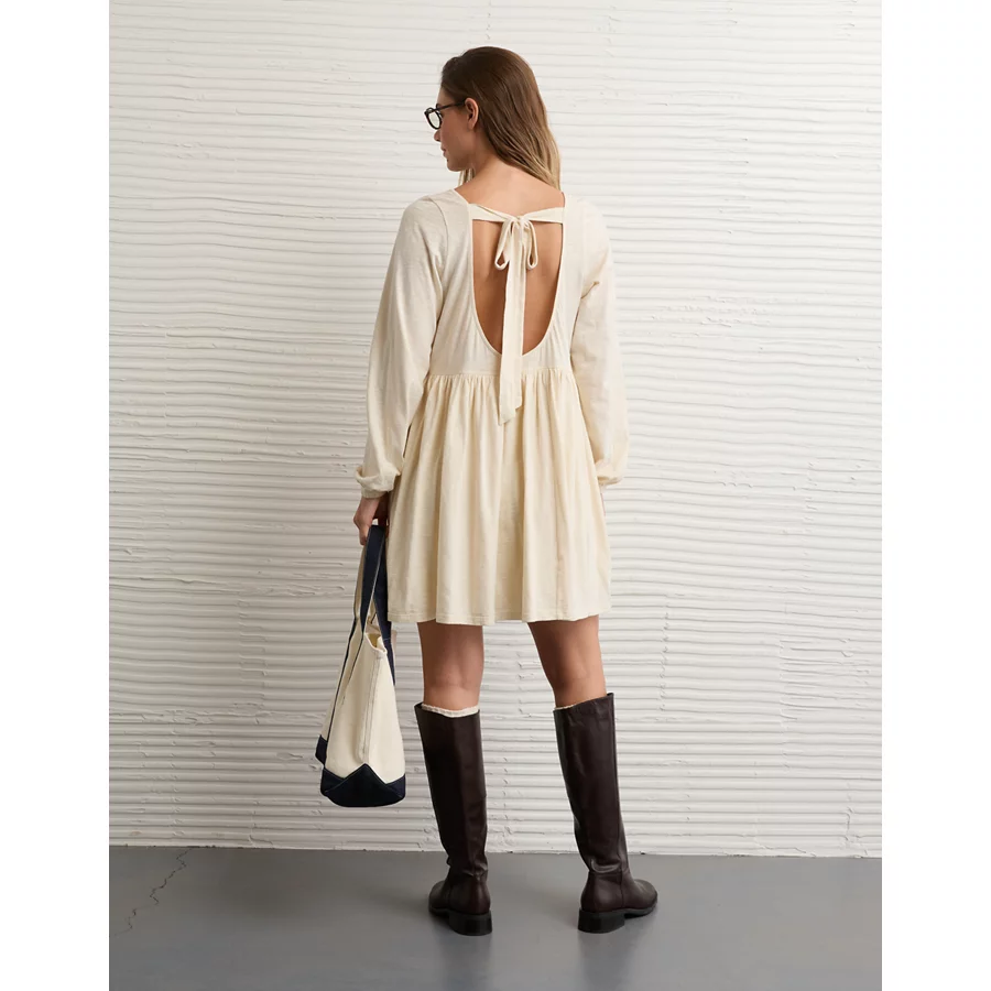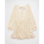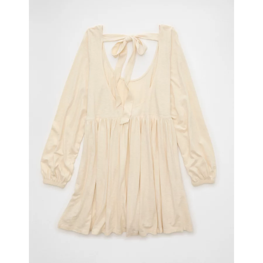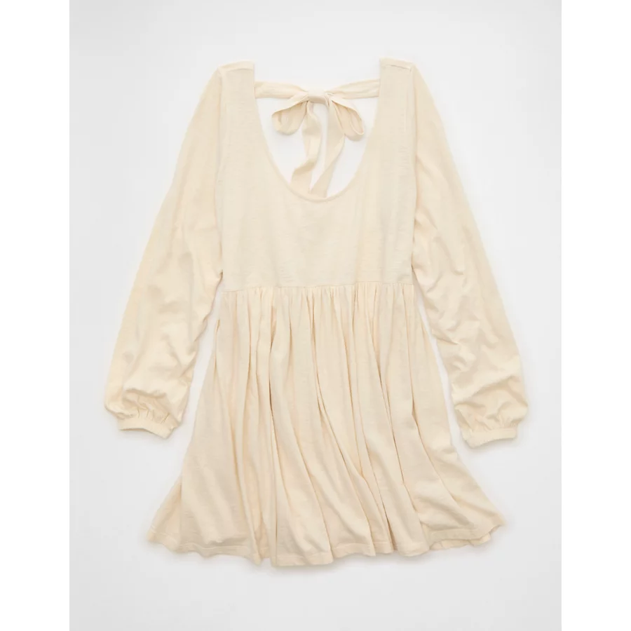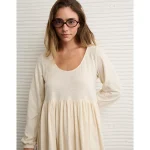 AE Sunchaser Knit Long-Sleeve Scoop Neck Mini Dress – Cream