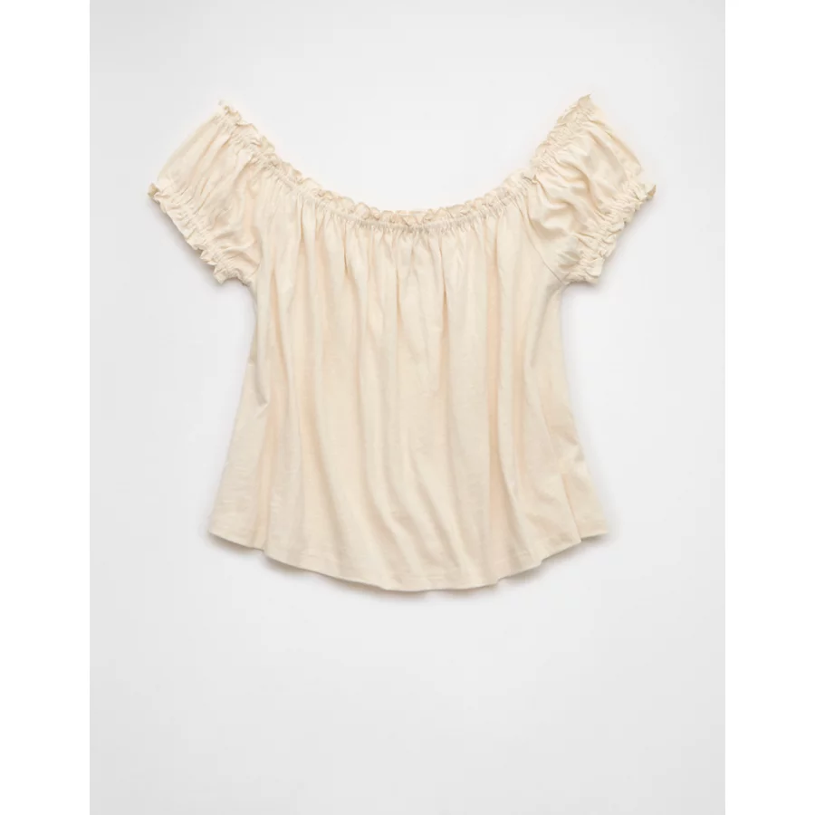AE Sunchaser Knit Off The Shoulder Swing Top – Cream
