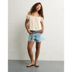 AE 11″ Dreamy Drape Stretch High-Waisted Jort – Light Tinted Wash