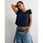 AE Sunchaser Knit Off The Shoulder Swing Top – Rich Navy