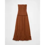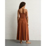 AE Sunchaser Knit Smocked Drop Waist Midi Dress – Amber Brown