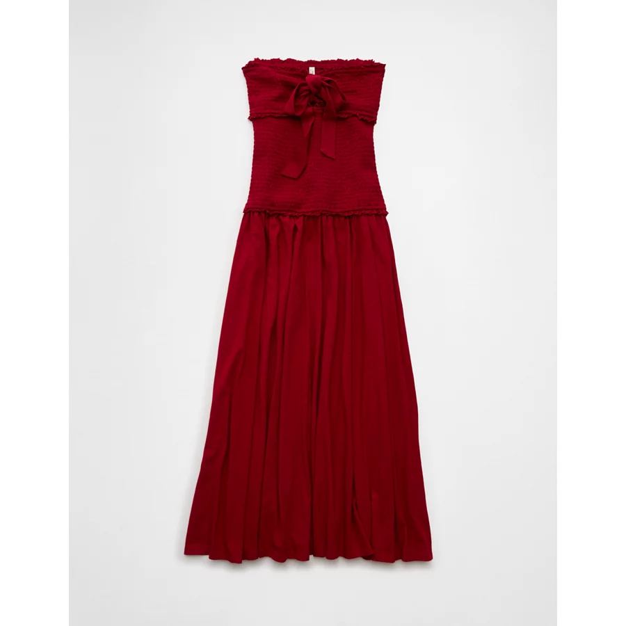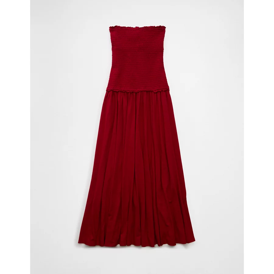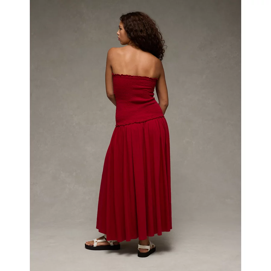AE Sunchaser Knit Smocked Drop Waist Midi Dress – Berry