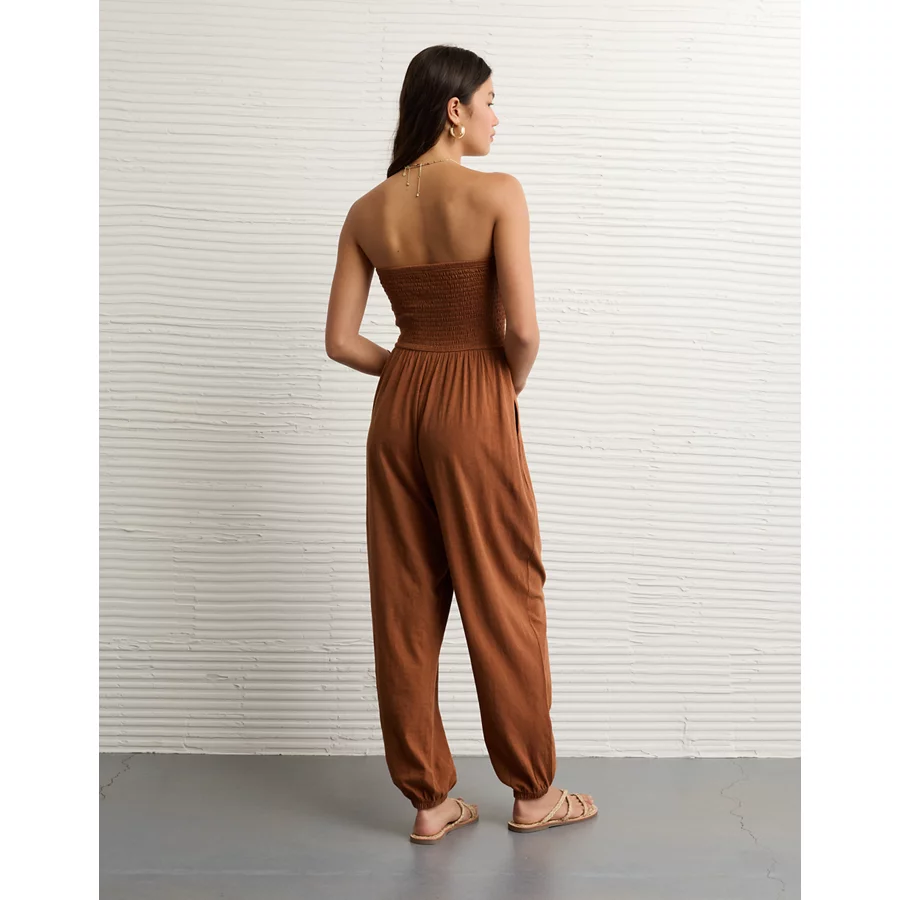 AE Sunchaser Knit Smocked Tube Jumpsuit – Amber Brown