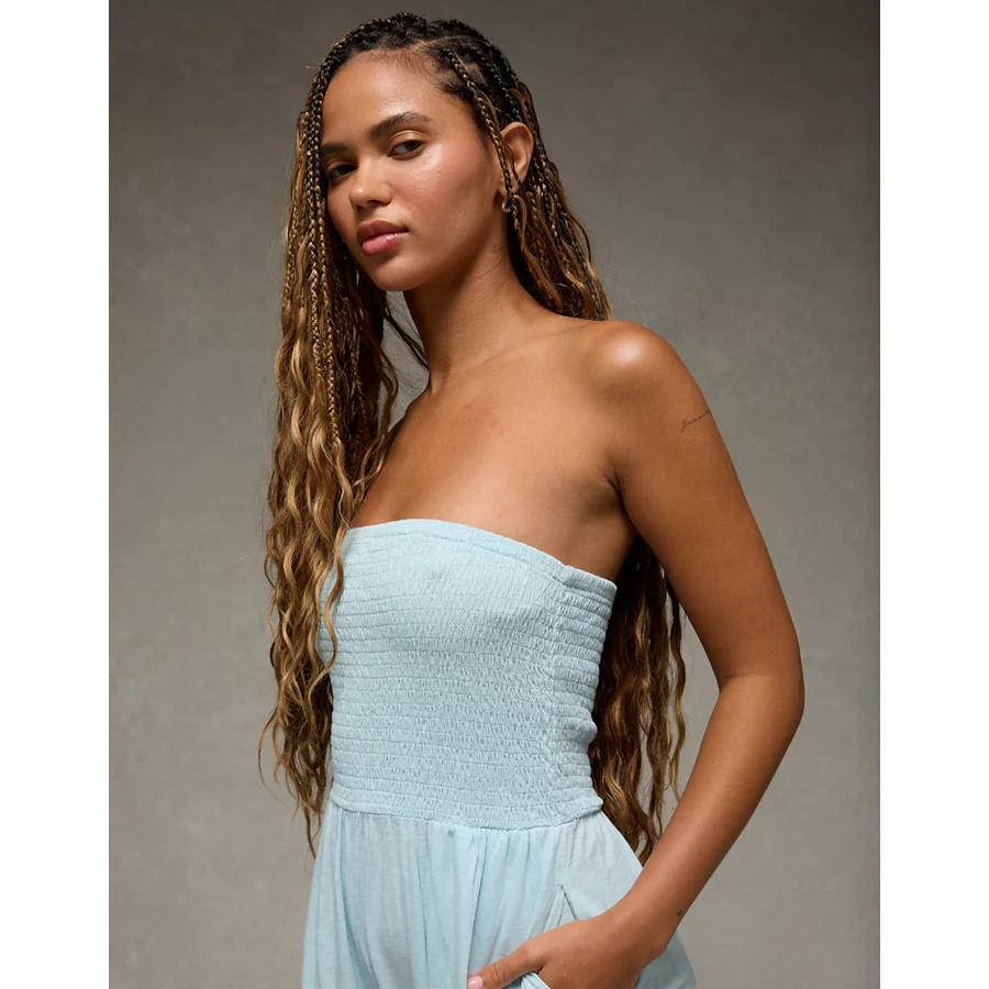 AE Sunchaser Knit Smocked Tube Jumpsuit – Blue