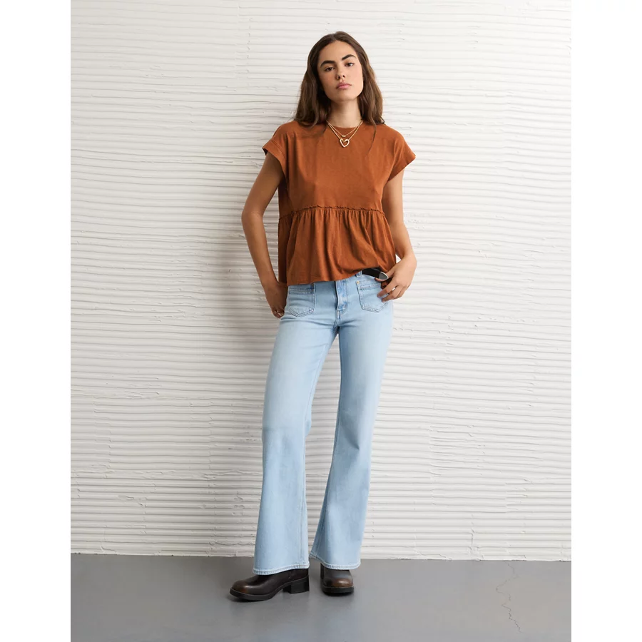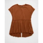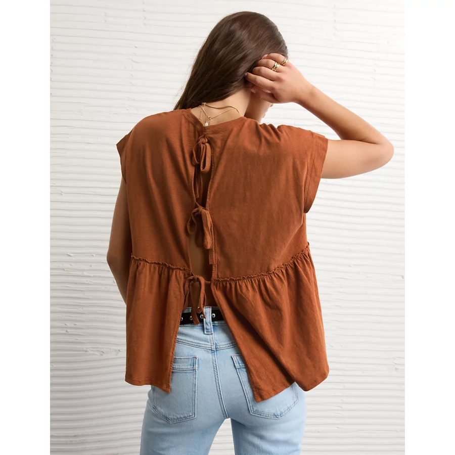 AE Sunchaser Knit Tie Back Babydoll T-Shirt – Amber Brown