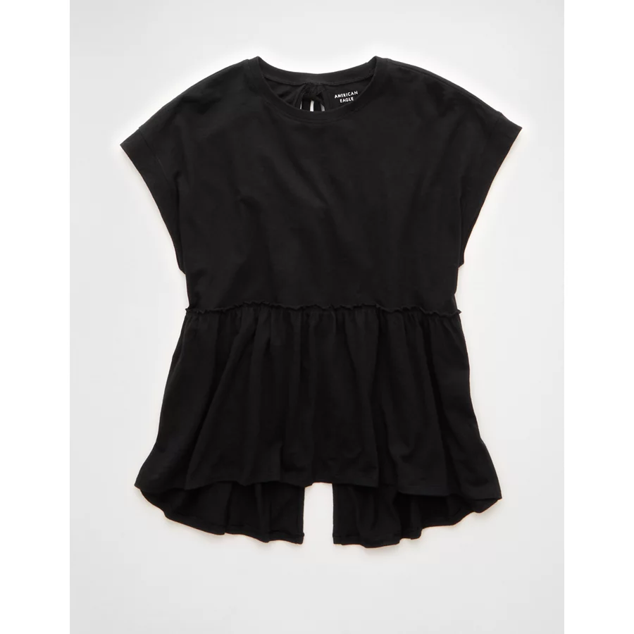 AE Sunchaser Knit Tie Back Babydoll T-Shirt – Black
