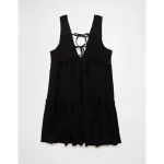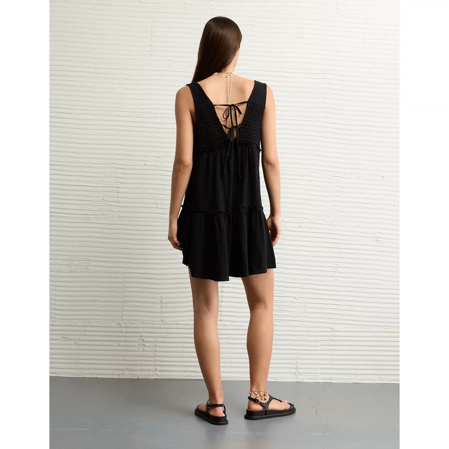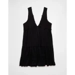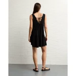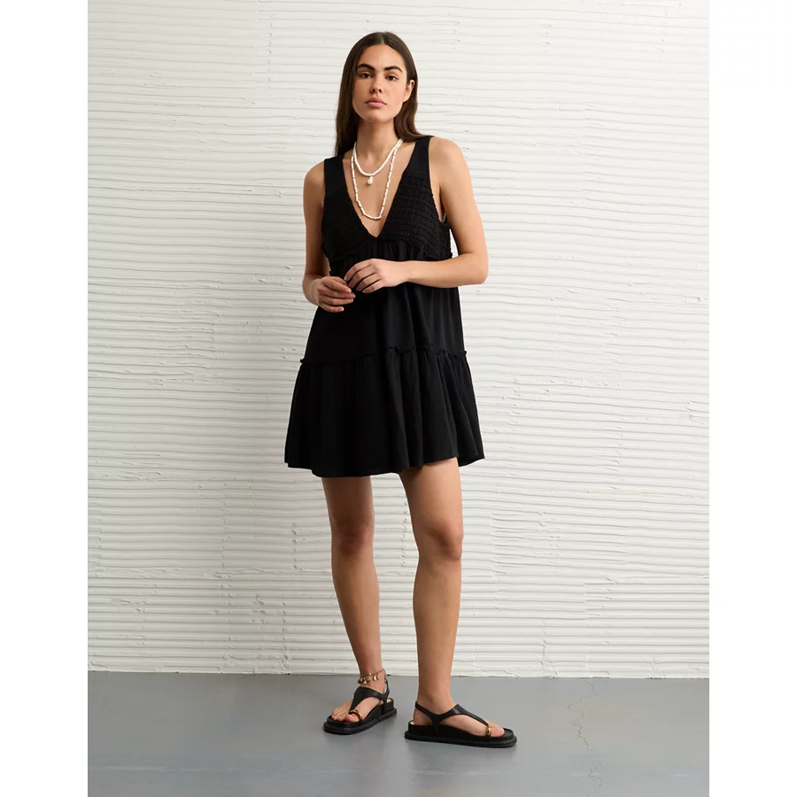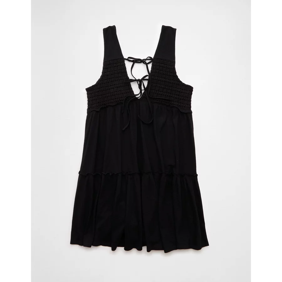 AE Sunchaser Knit V-Neck Crochet Mini Dress – Black