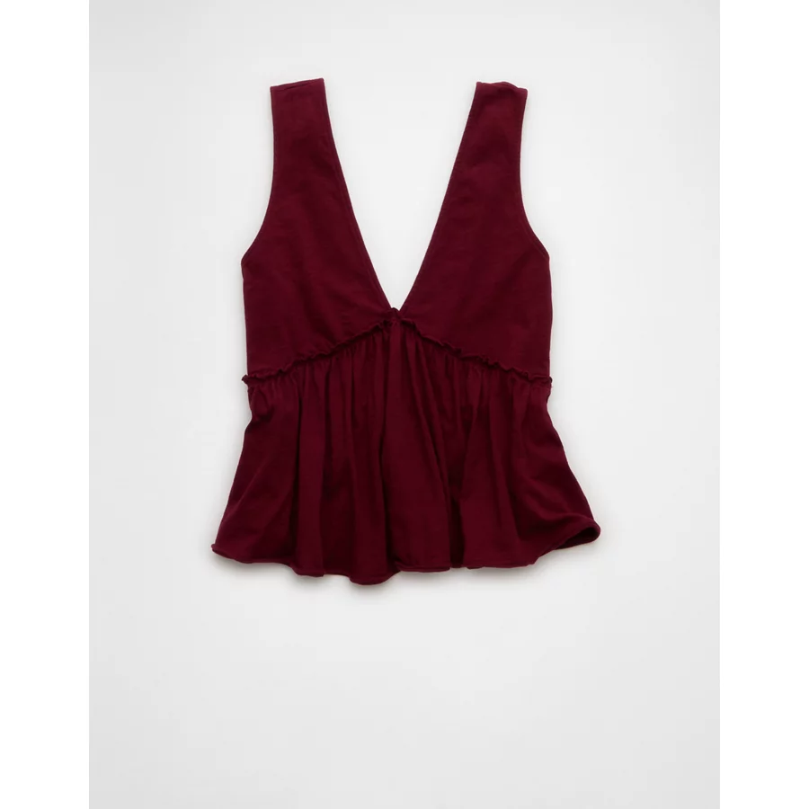 AE Sunchaser Knit V-Neck Swing Tank Top - Heather Gray