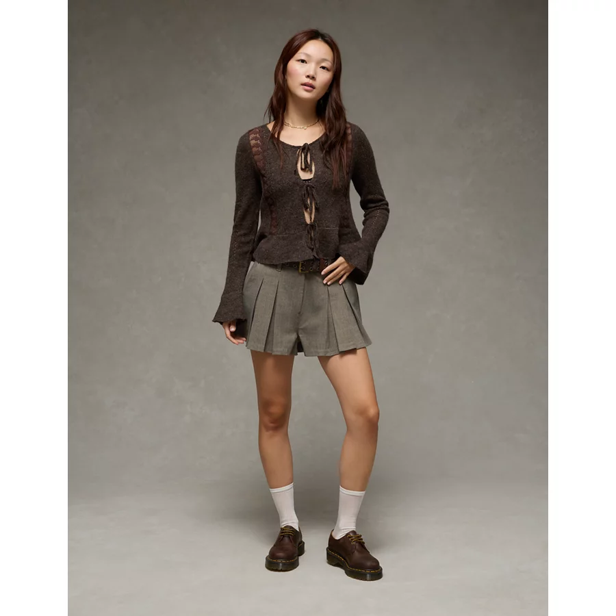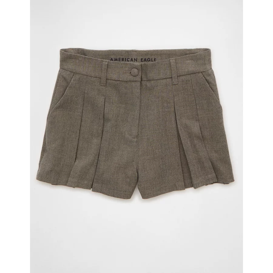 AE Super High-Waisted Pleated Trouser Short – Medium Heather Gray