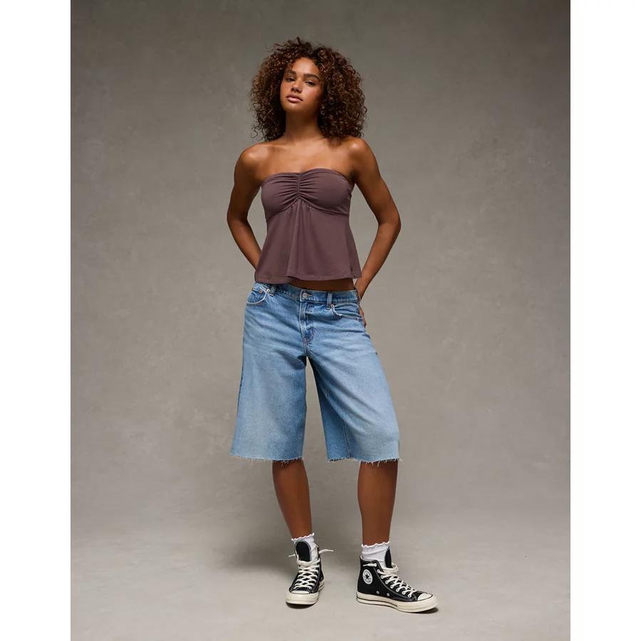 AE 8″ Dreamy Drape Stretch Low-Rise Baggy Jort – Medium Bright Indigo