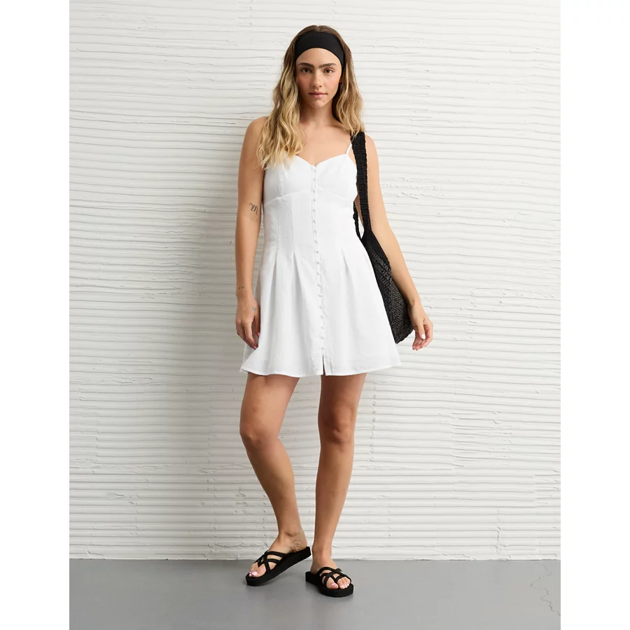 AE Sweetheart Button-Up Mini Dress – Ecru Denim