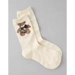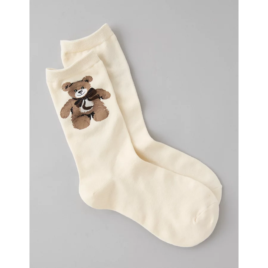 AE Teddy Bear Crew Socks - Cream