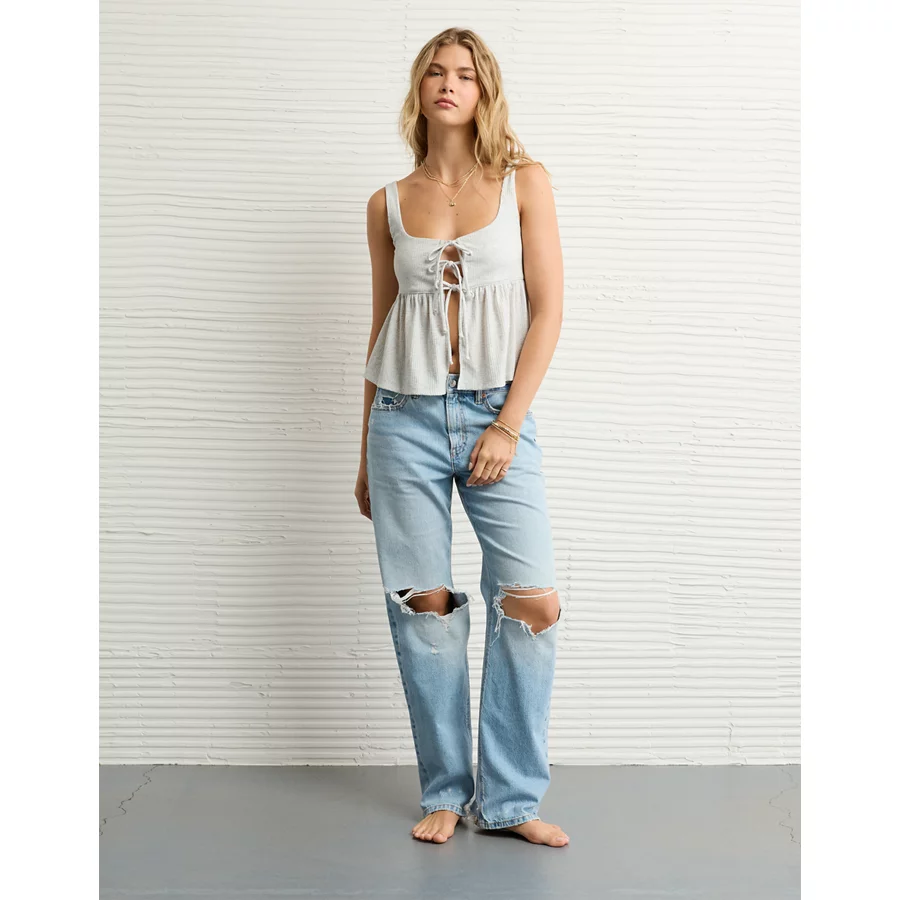 AE Tie Front Flyaway Babydoll Tank Top – Light Heather Gray