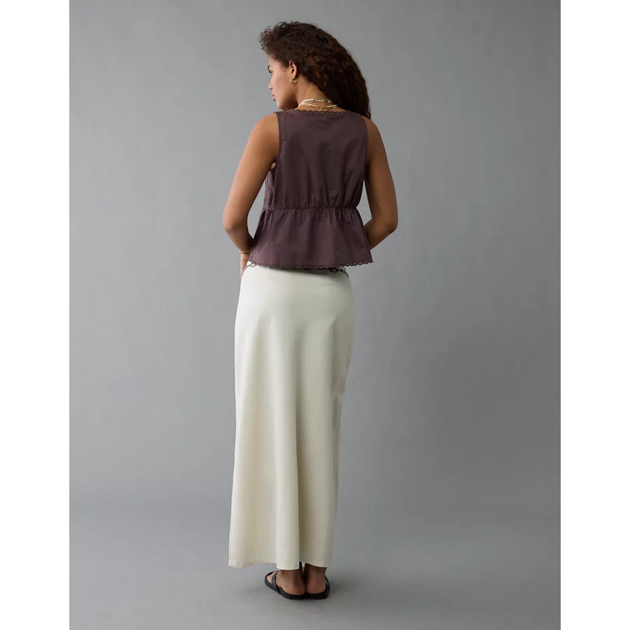 AE Tie Front Scoop Neck Flyaway Tank Top – Brown