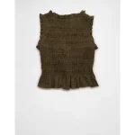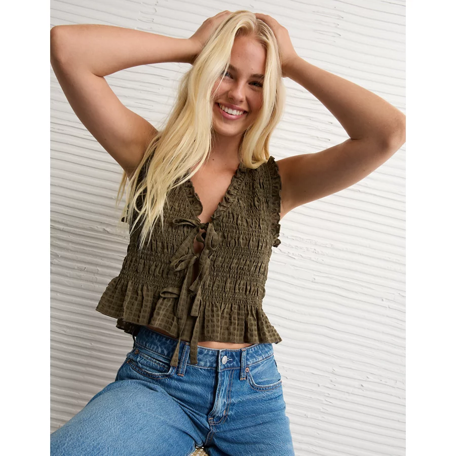 AE Tie-Front Smocked Tank Top – Olive