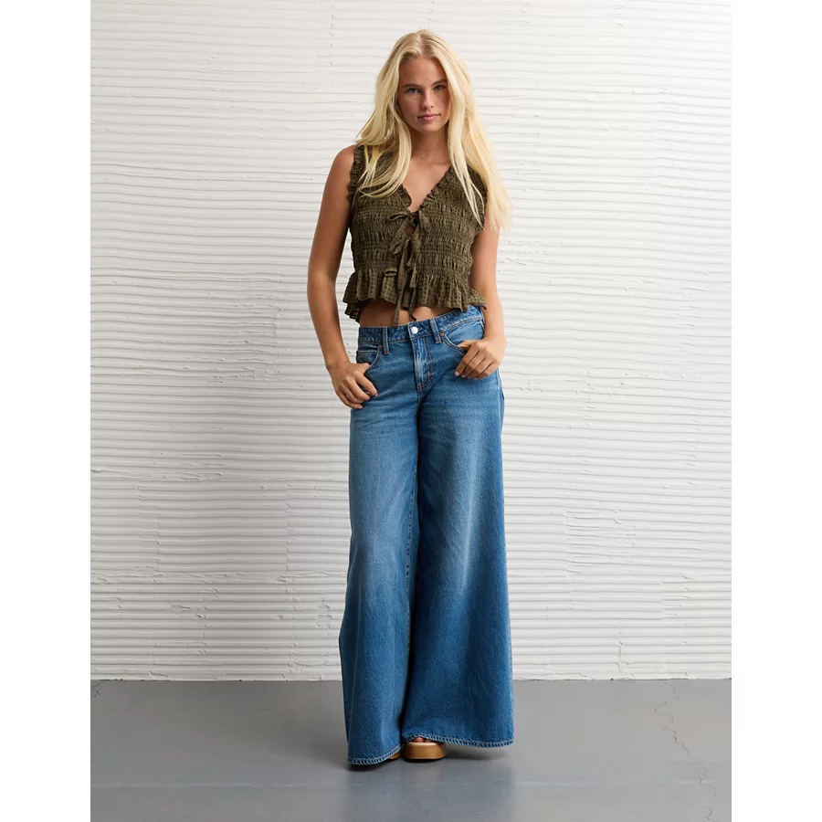 AE Tie-Front Smocked Tank Top - Cream