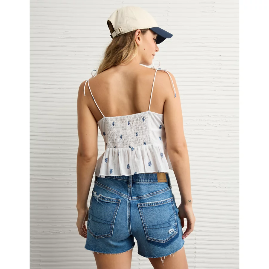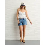 AE 11″ Dreamy Drape Stretch High-Waisted Jort – Light Tinted Wash