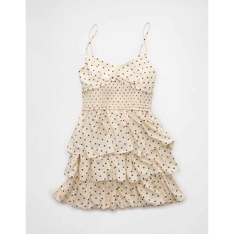 AE Tiered Polka Dot Mini Dress – Cream