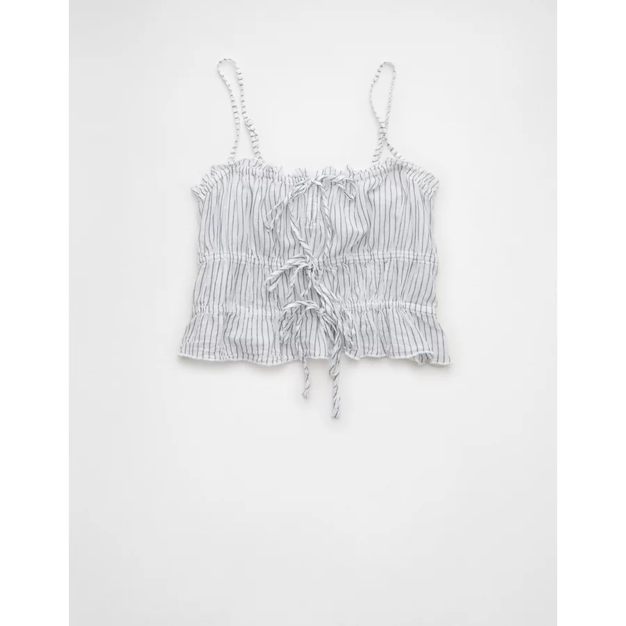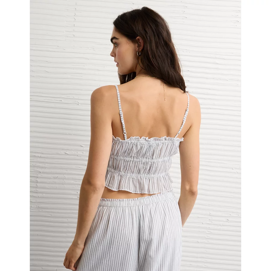 AE Tiered Ruched Tank Top - White