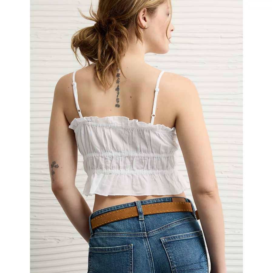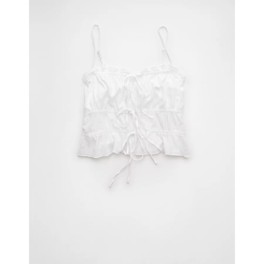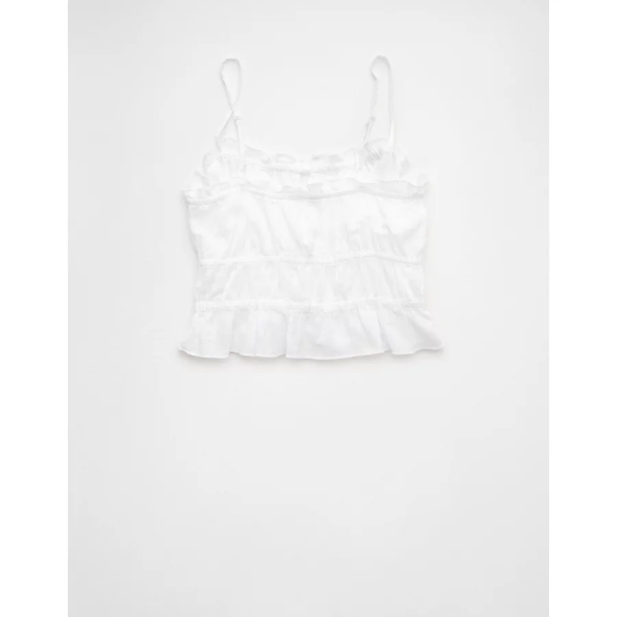 AE Tiered Ruched Tank Top – White