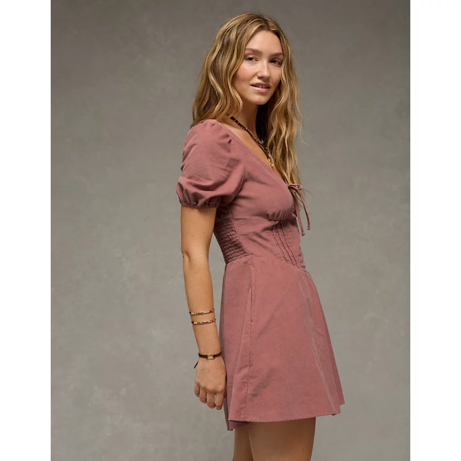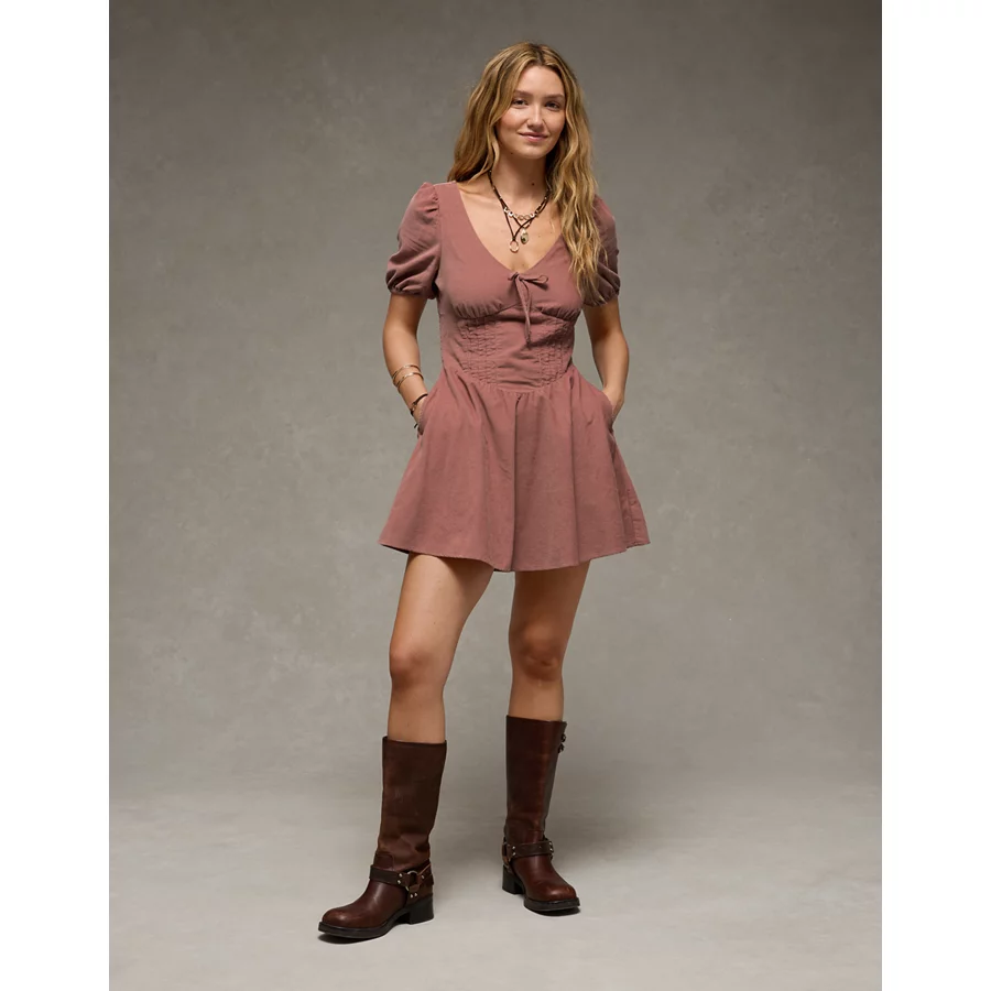 AE V-Neck Corduroy Mini Dress - Torte