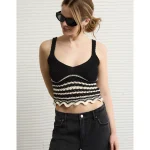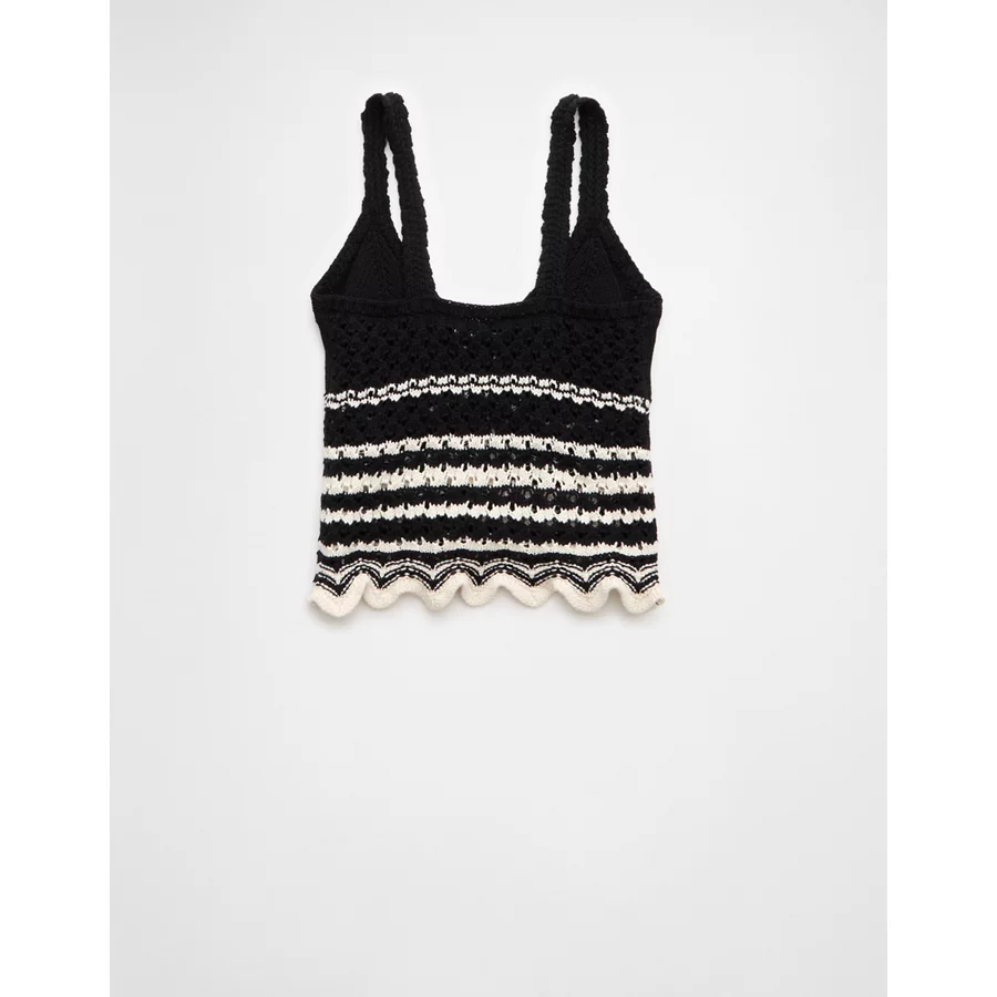 AE V-Neck Pointelle Striped Tank Top – Black