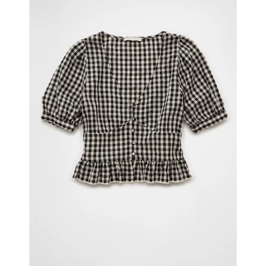 AE V-Neck Puff Sleeve Corset Shirt – Black