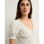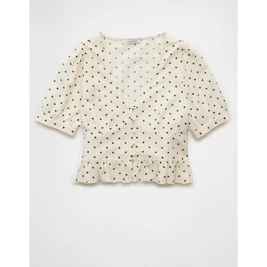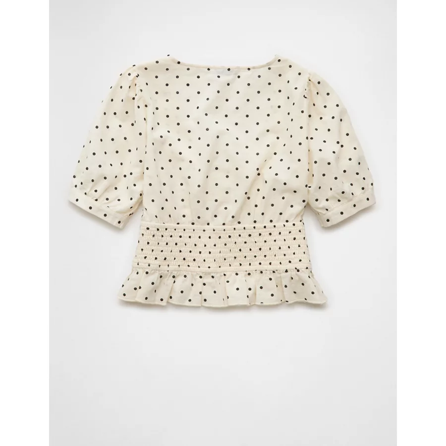 AE V-Neck Puff Sleeve Corset Shirt – Cream