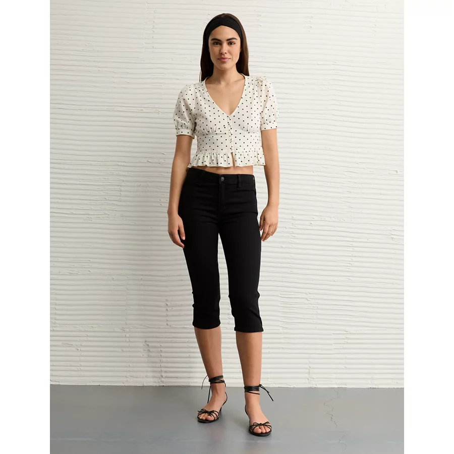 AE V-Neck Puff Sleeve Corset Shirt - Black