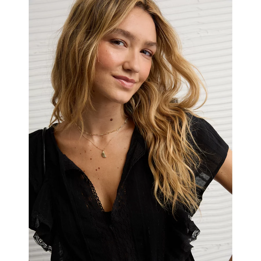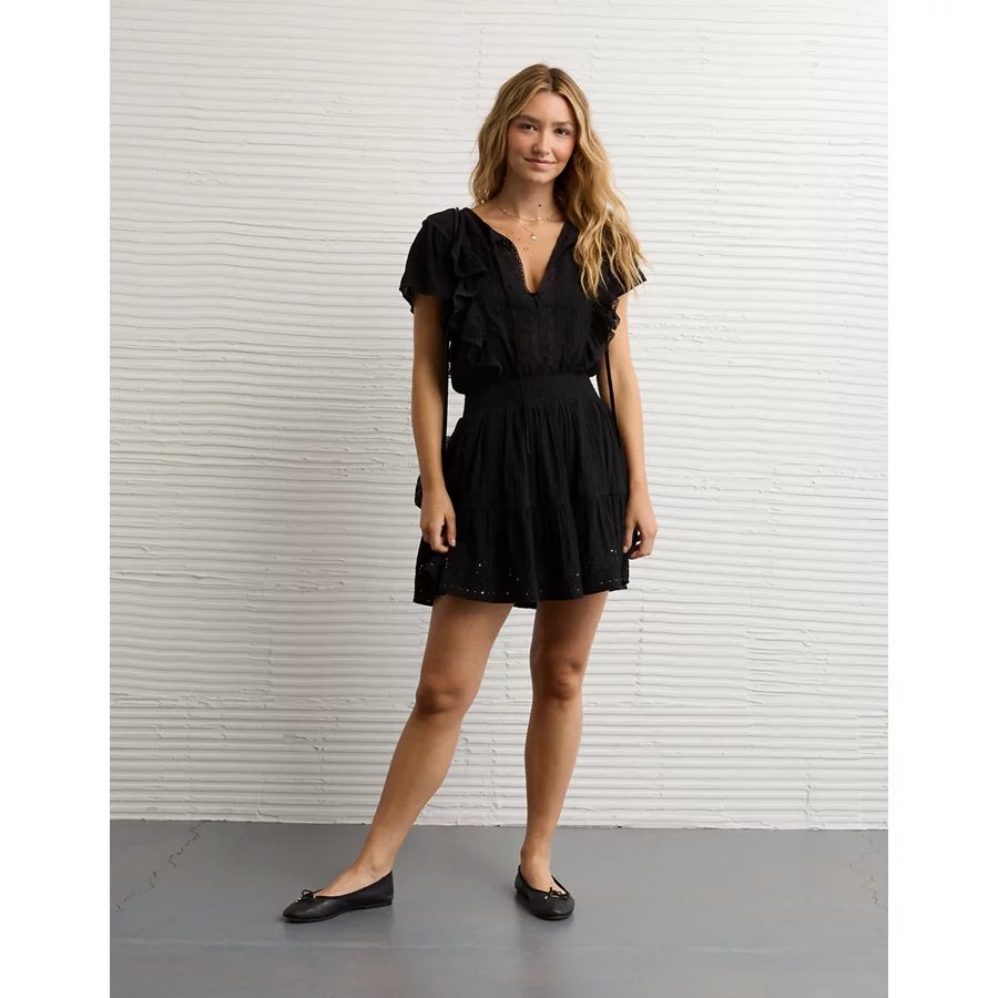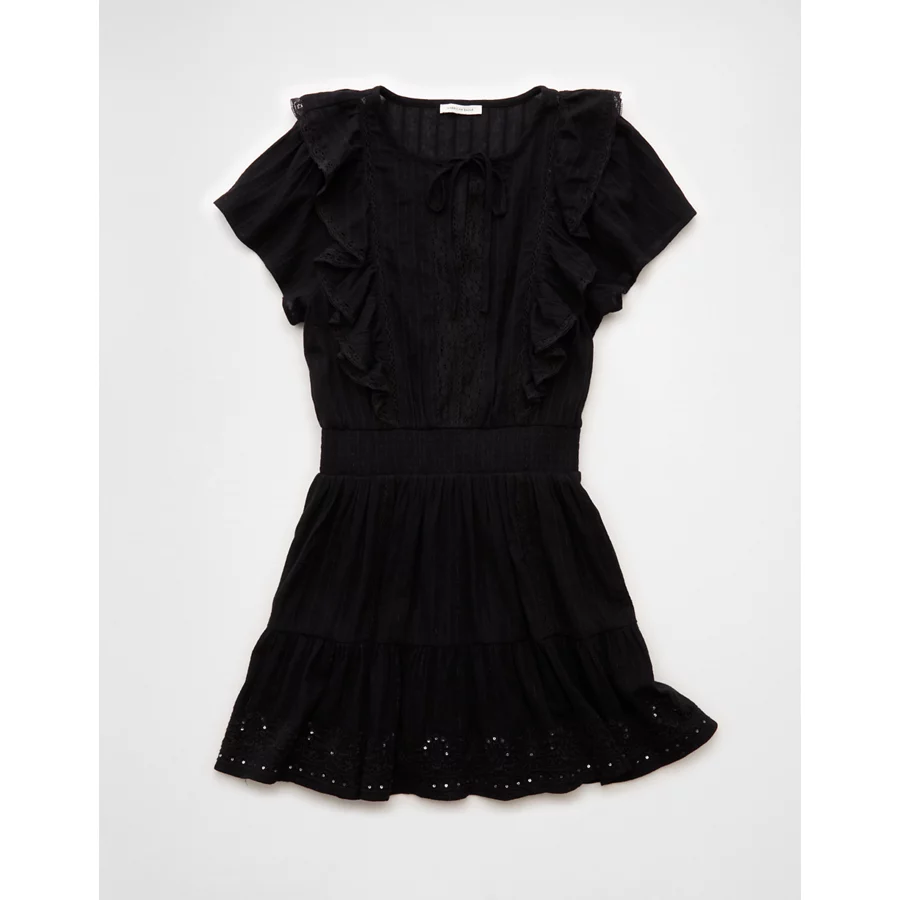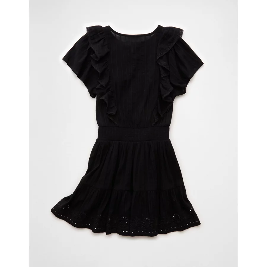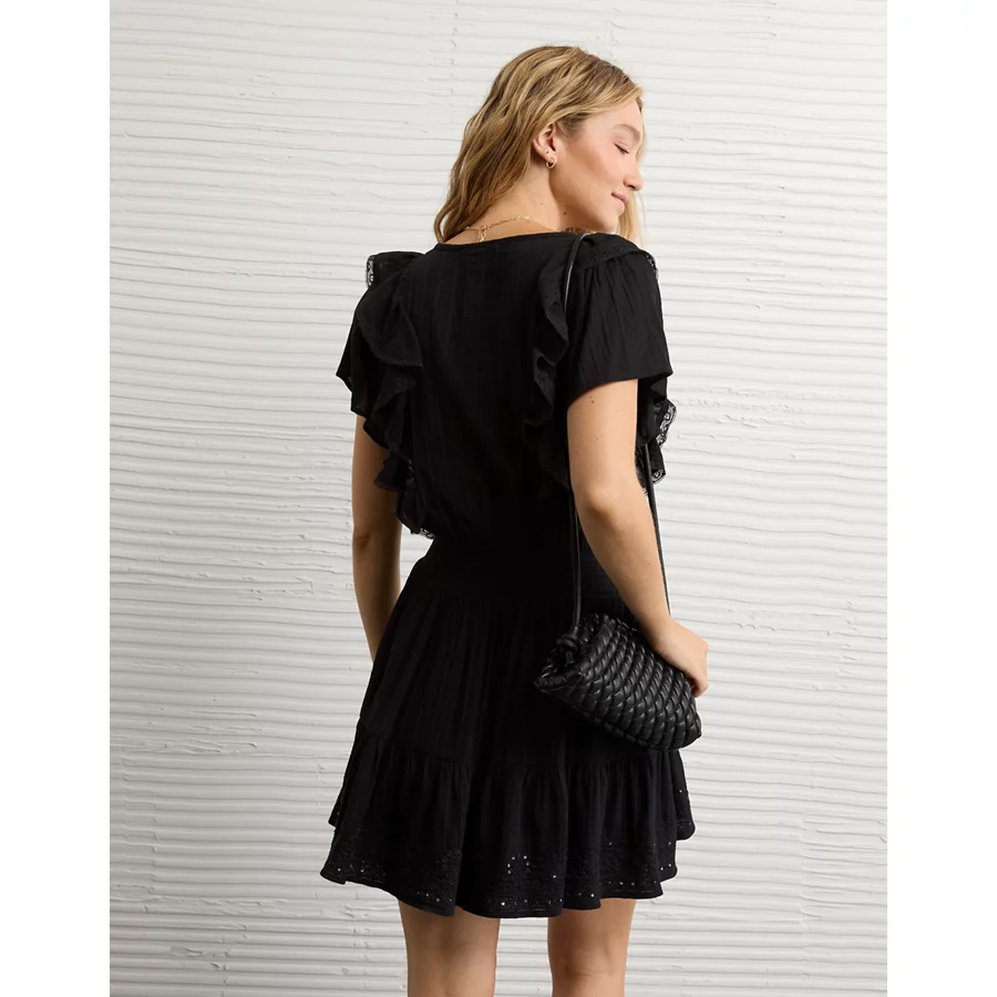 AE V-Neck Ruffle Mini Dress – Black