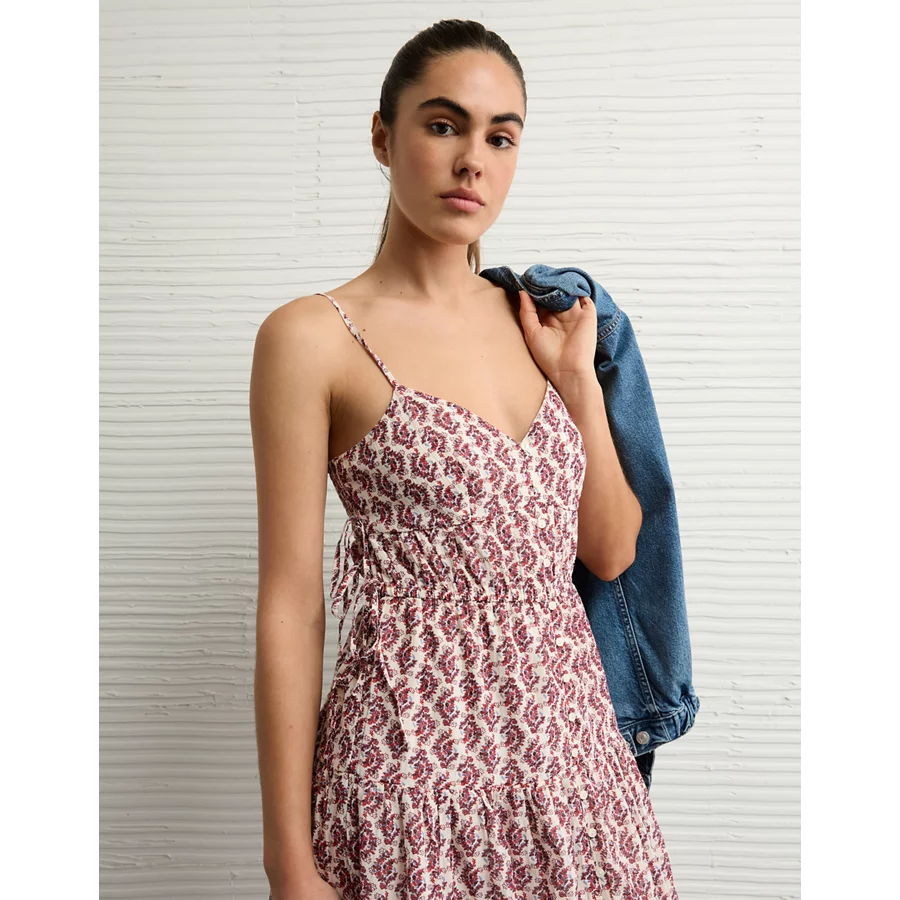 AE V-Neck Side Tie Midi Dress – Berry
