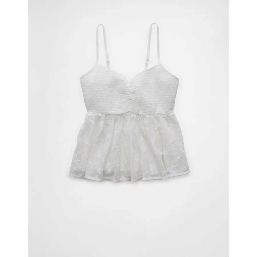 AE V-Neck Smocked Babydoll Cami – White