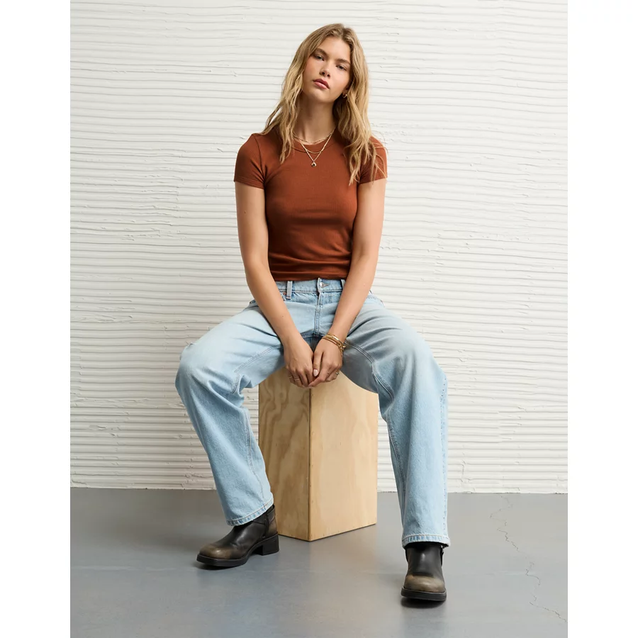 AE Waffle Baby Tee – Amber Brown