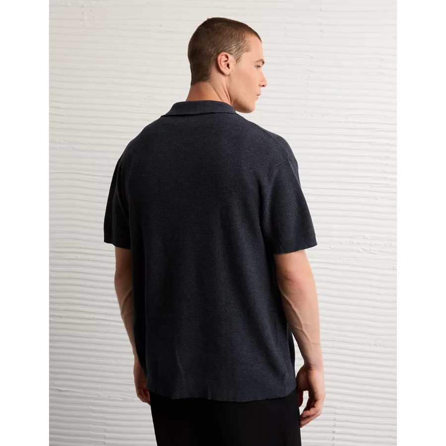 AE Waffle Button-Up Polo Shirt – Charcoal