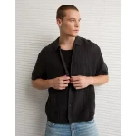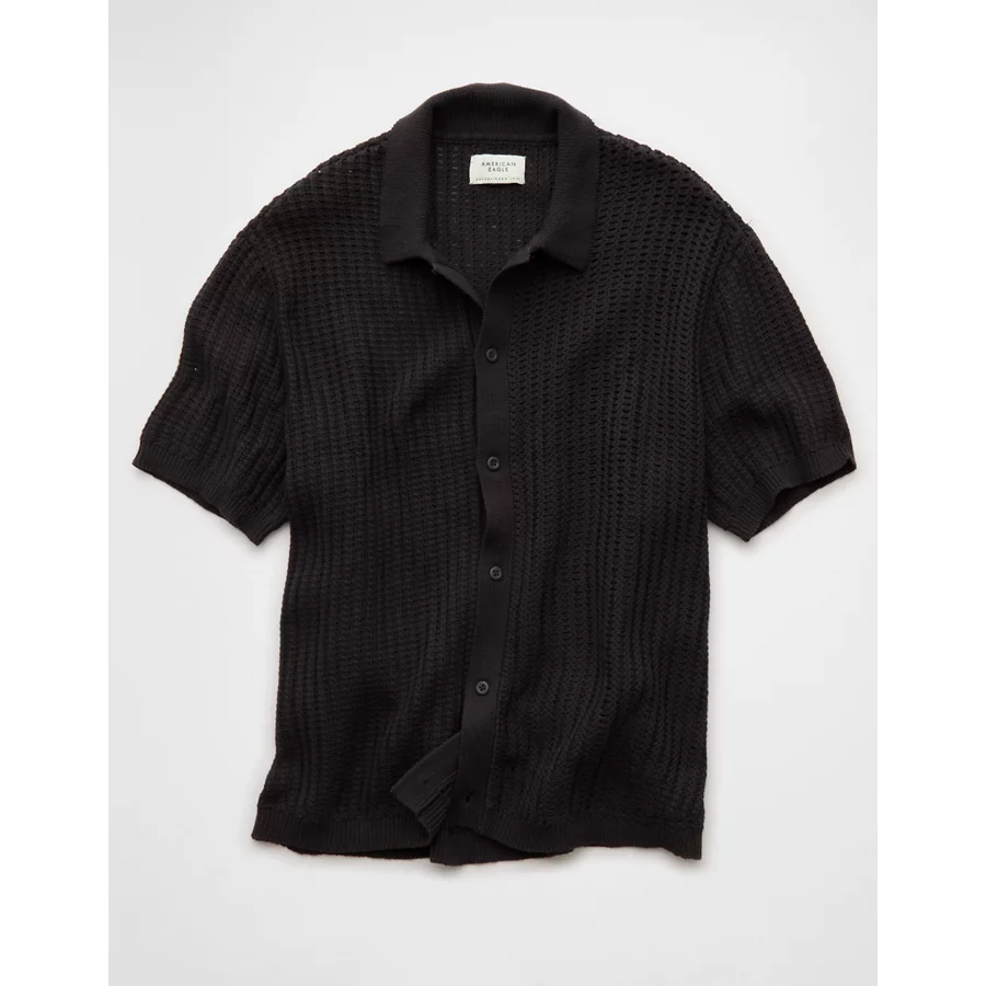 AE Weekend Button-Up Sweater Polo Shirt – Faded Black